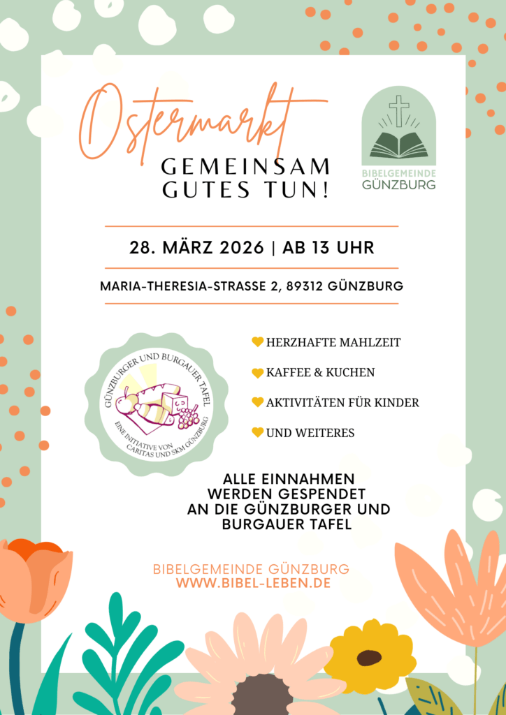Als Bibelgemeinde Günzburg feiern wir jeden Sonntag um 10 Uhr Gottesdienst.